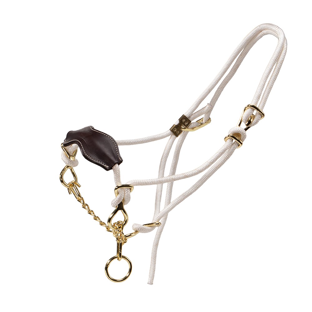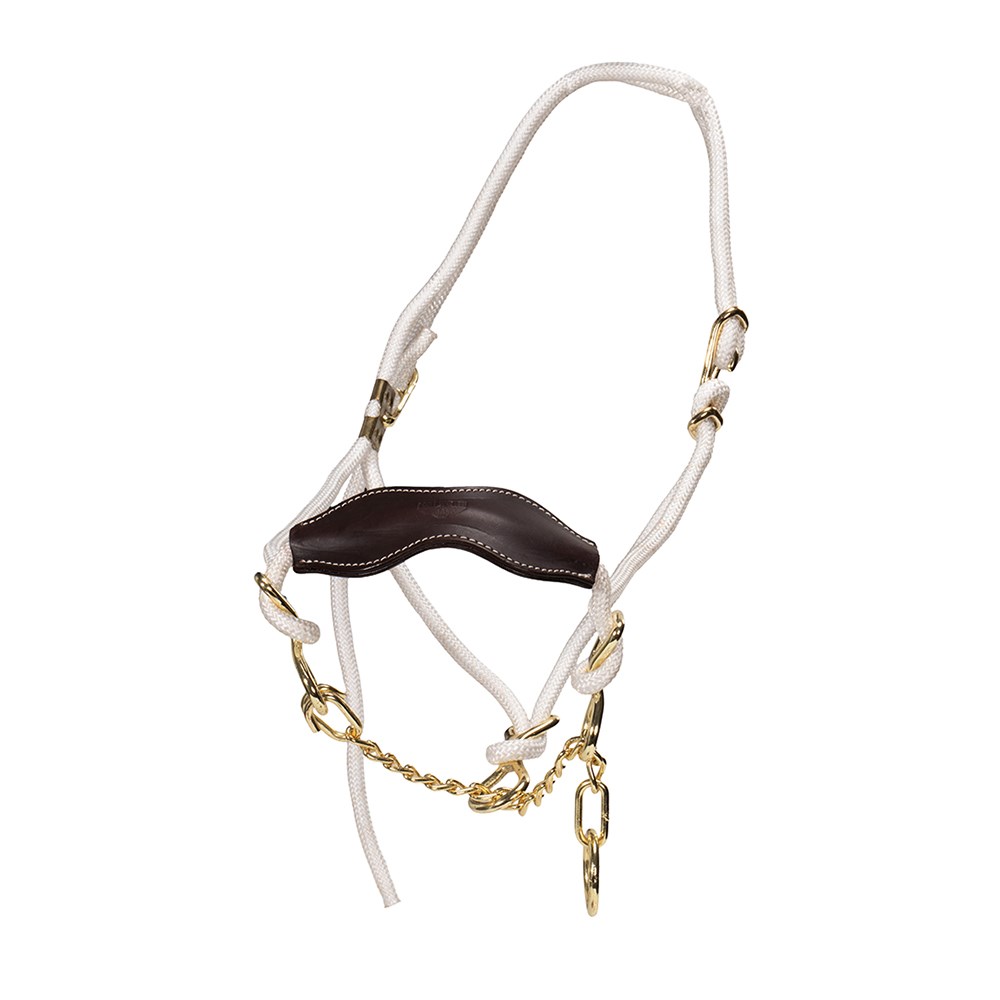 Made from braided non-twist poly rope with a sturdy, durable chain. Our cattle halter has the added benefit of American leather to cover the nose to protect valuable show and stud stock.