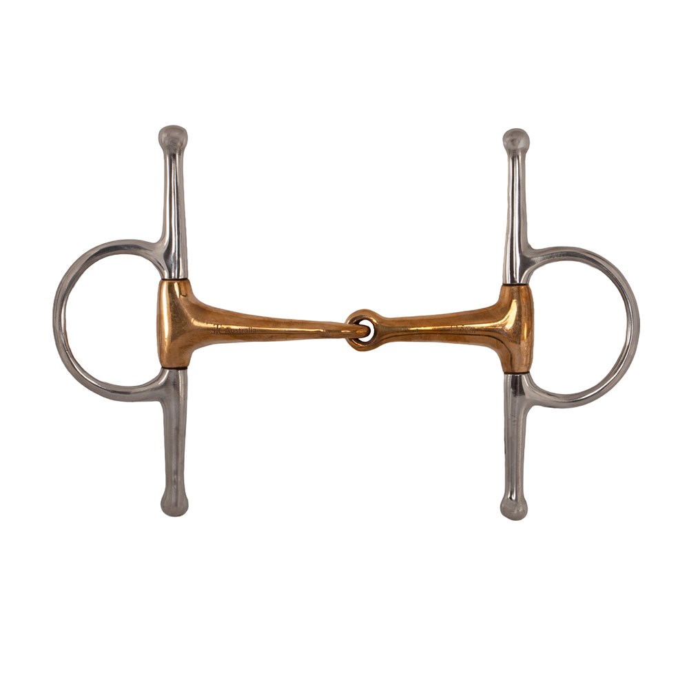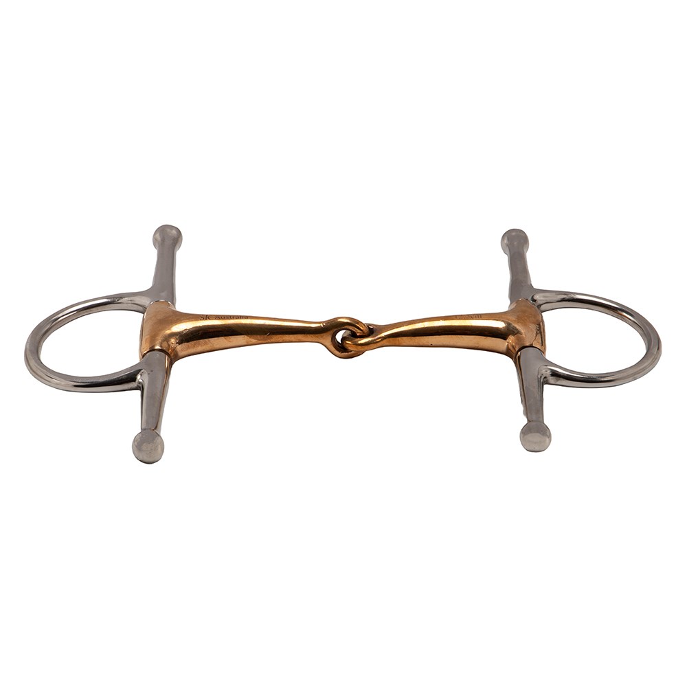 This Snaffle has full cheeks and a copper, single jointed mouthpiece.