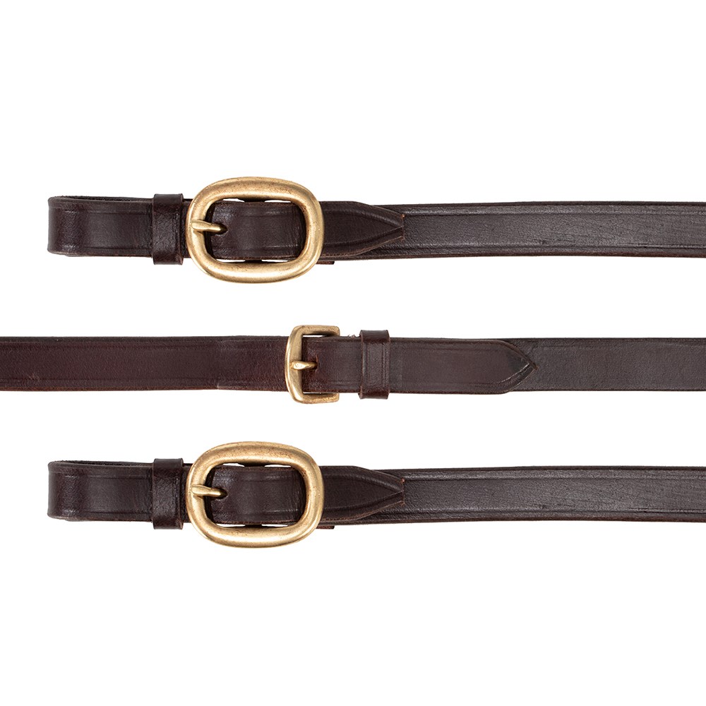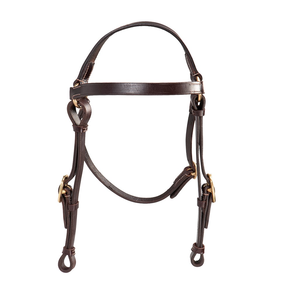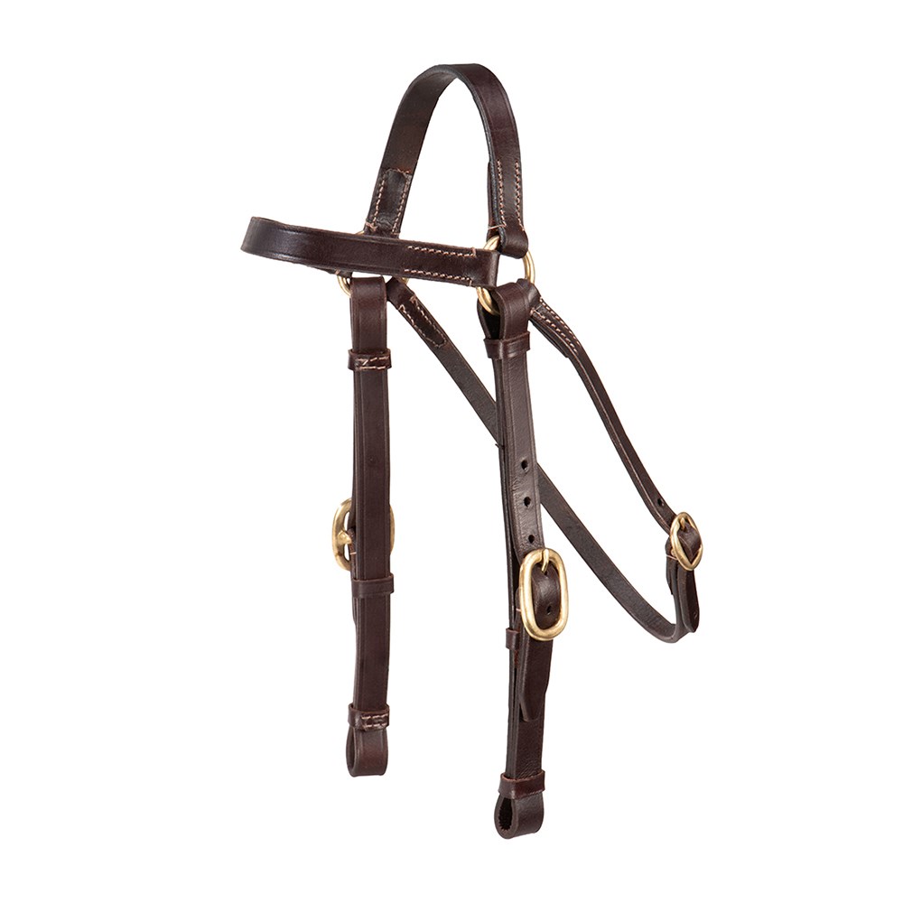 Pull-up leather is leather that has been treated with an oil or wax finish. Crafted from high quality hides, the natural markings are visible. The pull-up treatment significantly changes the look and feel of the leather and gives a slight waxy or oily feel with a unique look. It also provides protection, making pull-up leathers more robust and easy to maintain. Pull-up leathers are designed to develop a distressed look. They naturally develop rub marks, scuff marks and variations in colour with use. This range of bridles is pre-oiled and has brass fittings.