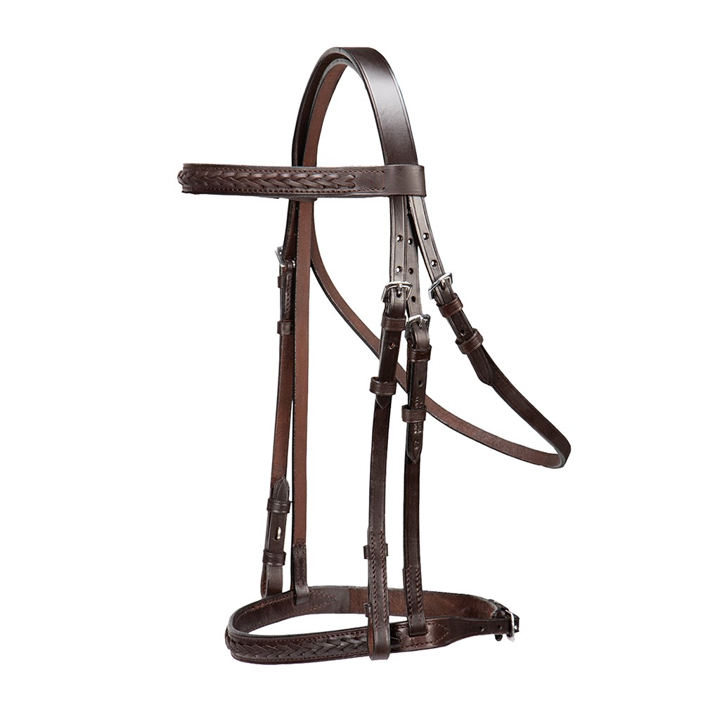 This versatile and functional snaffle bridle features a stunning hand laced browband and noseband. Made from quality leather with an edge crease for a classic look.