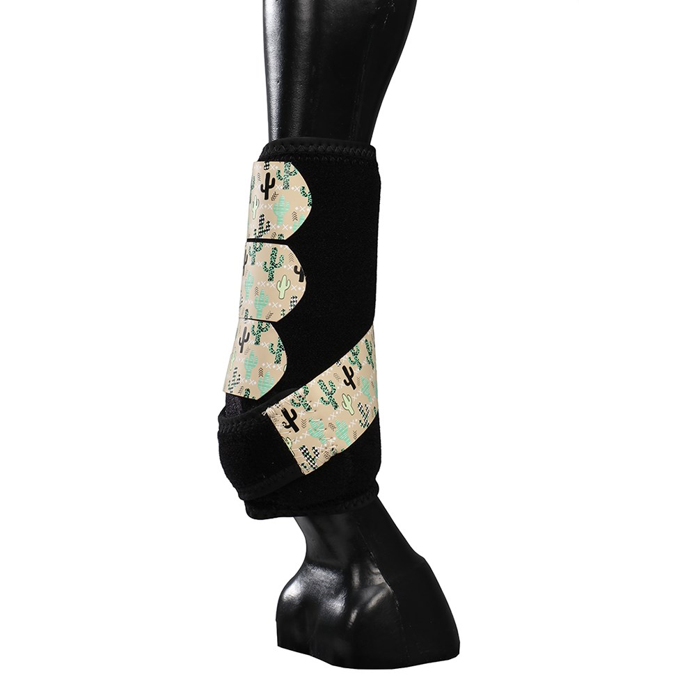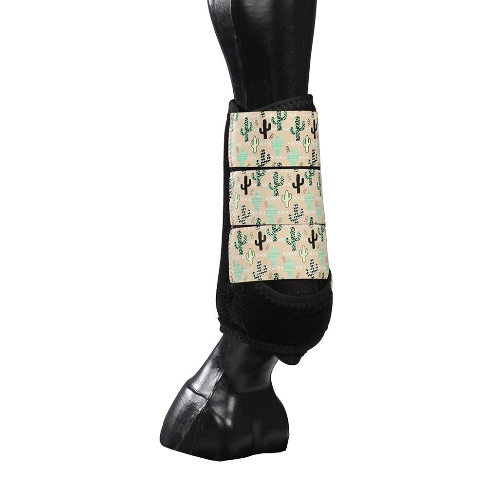 Protect your horse with these form-fitting boots designed for comfort and performance. Featuring shock-absorbing EVA foam and a neoprene liner, they offer excellent protection while ensuring a snug fit. The ergonomic design allows for free movement, while darted edges and stretch binding keep legs clean and free from dirt. With a range of stylish patterns, these boots provide the perfect combination of function and flair. Sold in pairs.