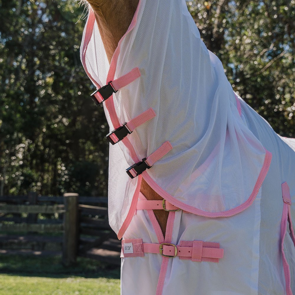 Introducing the Dakota Lightweight Mesh Rug, designed with affordability and practicality in mind. This rug features a breezy mesh construction that keeps your horse cool and protected during the summer months. Available in contrast trim colours, it adds a stylish touch to your gear. Lined with soft polyester satin at the mane, shoulder, and chest to prevent rubbing. With adjustable plastic neck clip closures, adjustable chest closures, and leg straps, this rug ensures a secure fit for your horse.