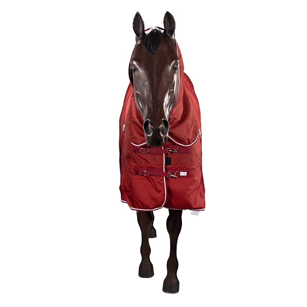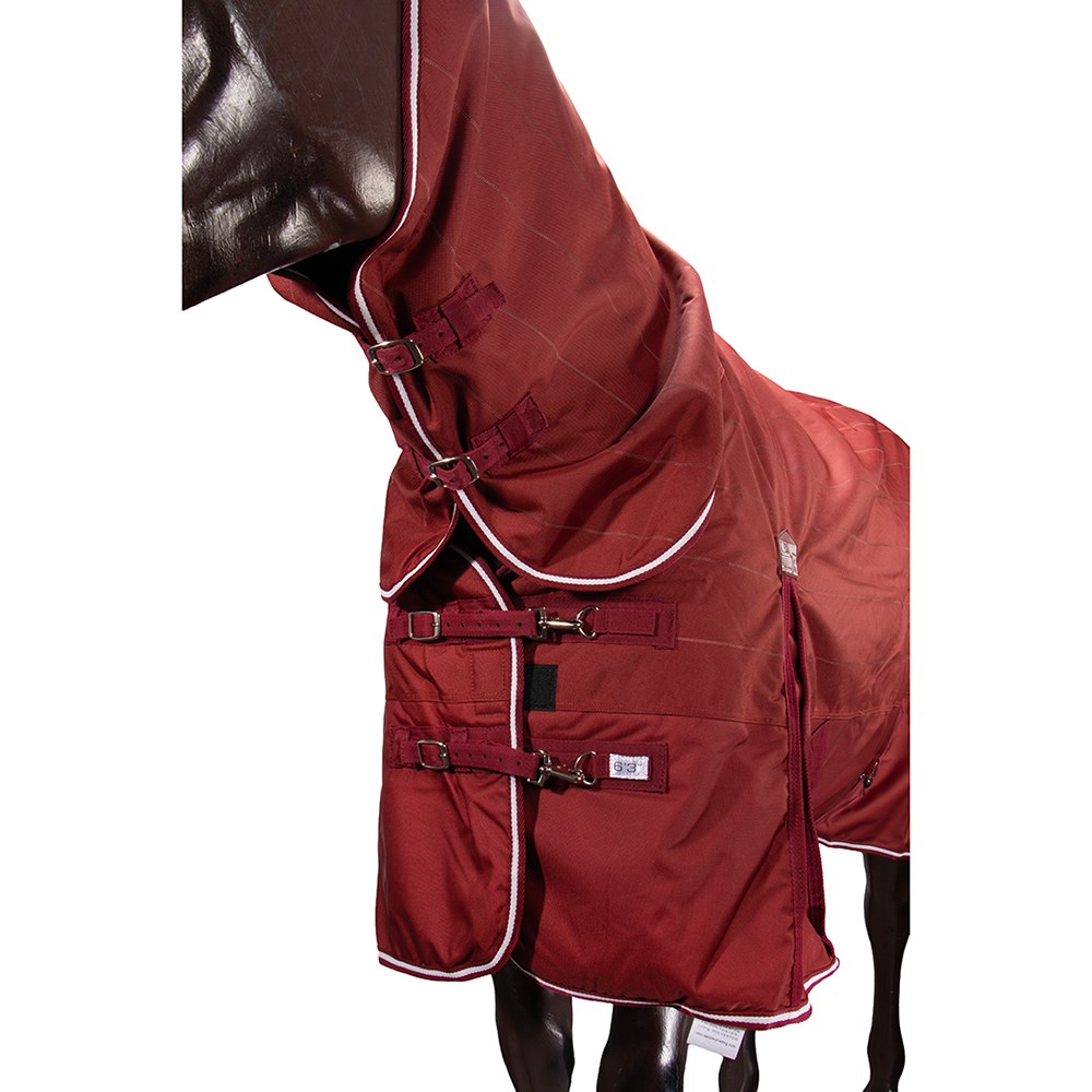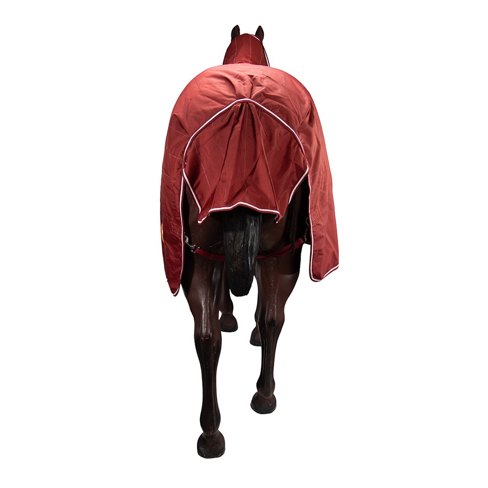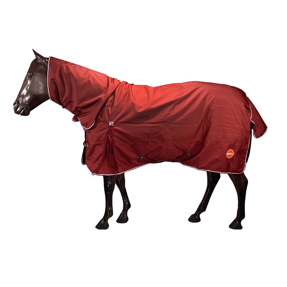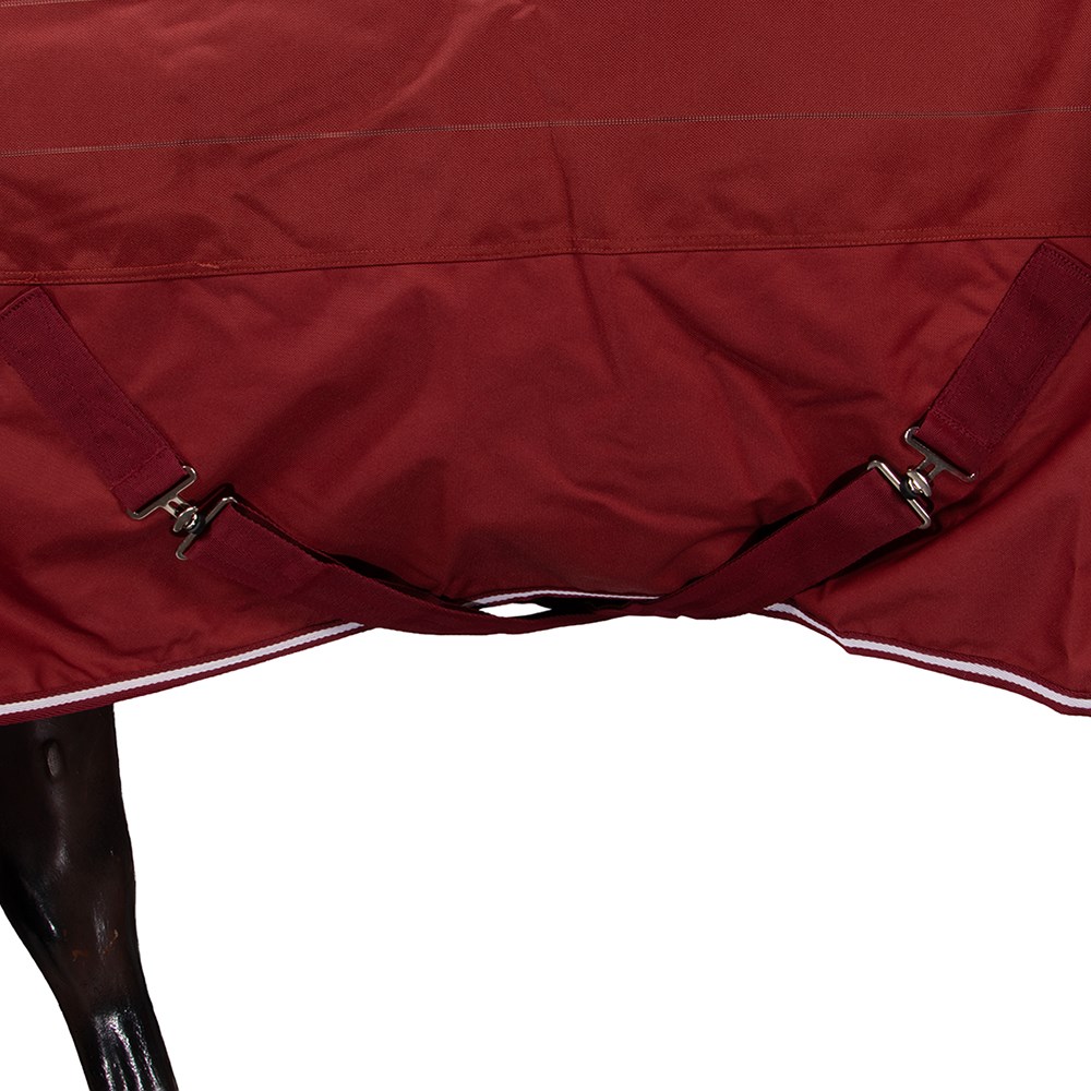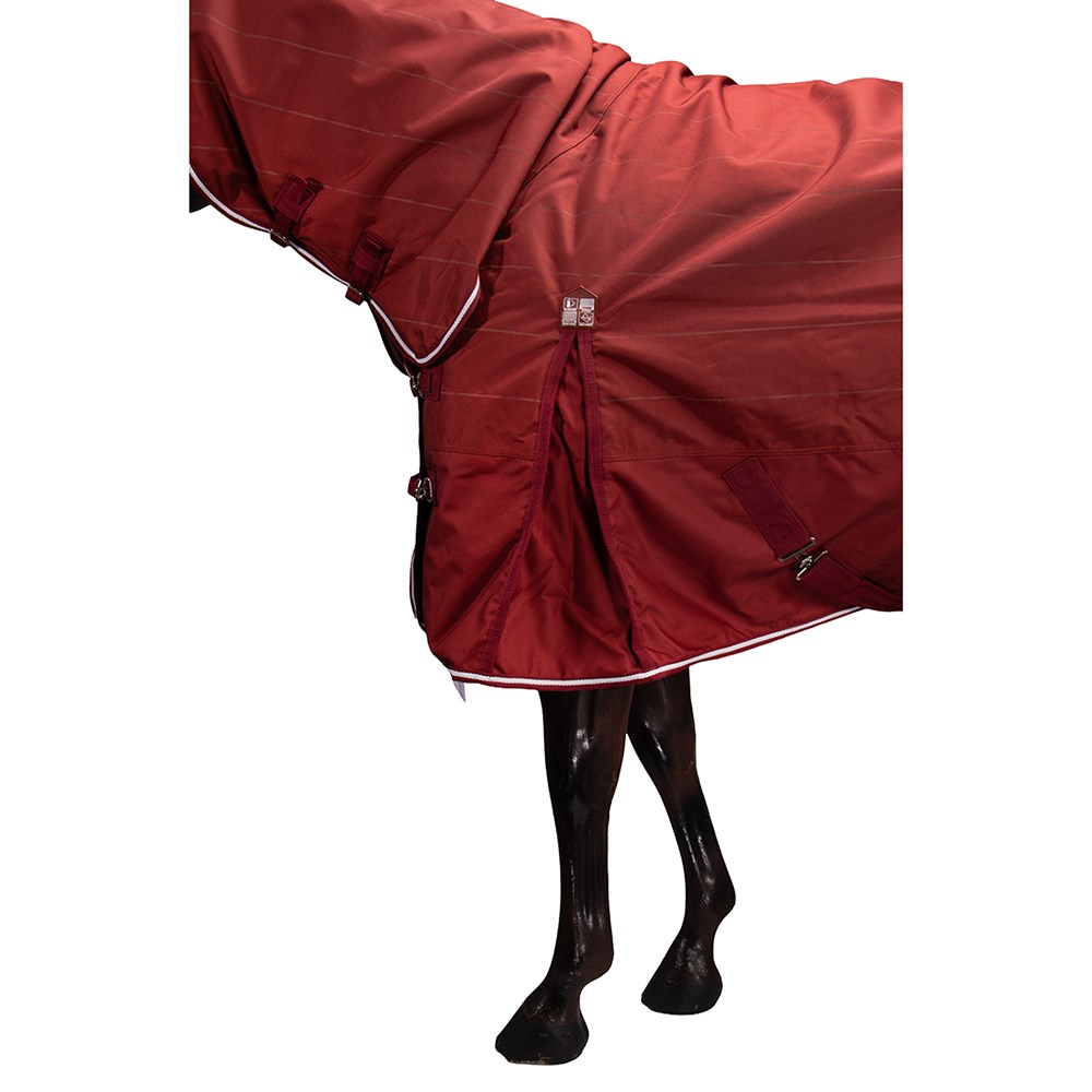 New 1200 Denier seamless ripstop outer, waterproof, breathable, lighter weight 150 gram polyfill, quilted lining, double chest straps, shoulder gusset, crossover surcingles, folded rump darts, tent tail flap, removable leg straps. This unique material has high visibility lines woven throughout the material, helping you to see your horse in the dark.