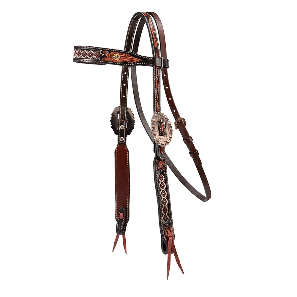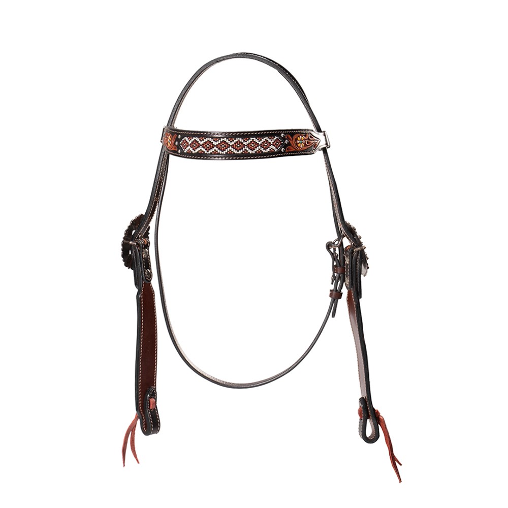 • Stunning beading on the browband and cheek pieces, and antique concho buckles make this Western Headstall a standout.