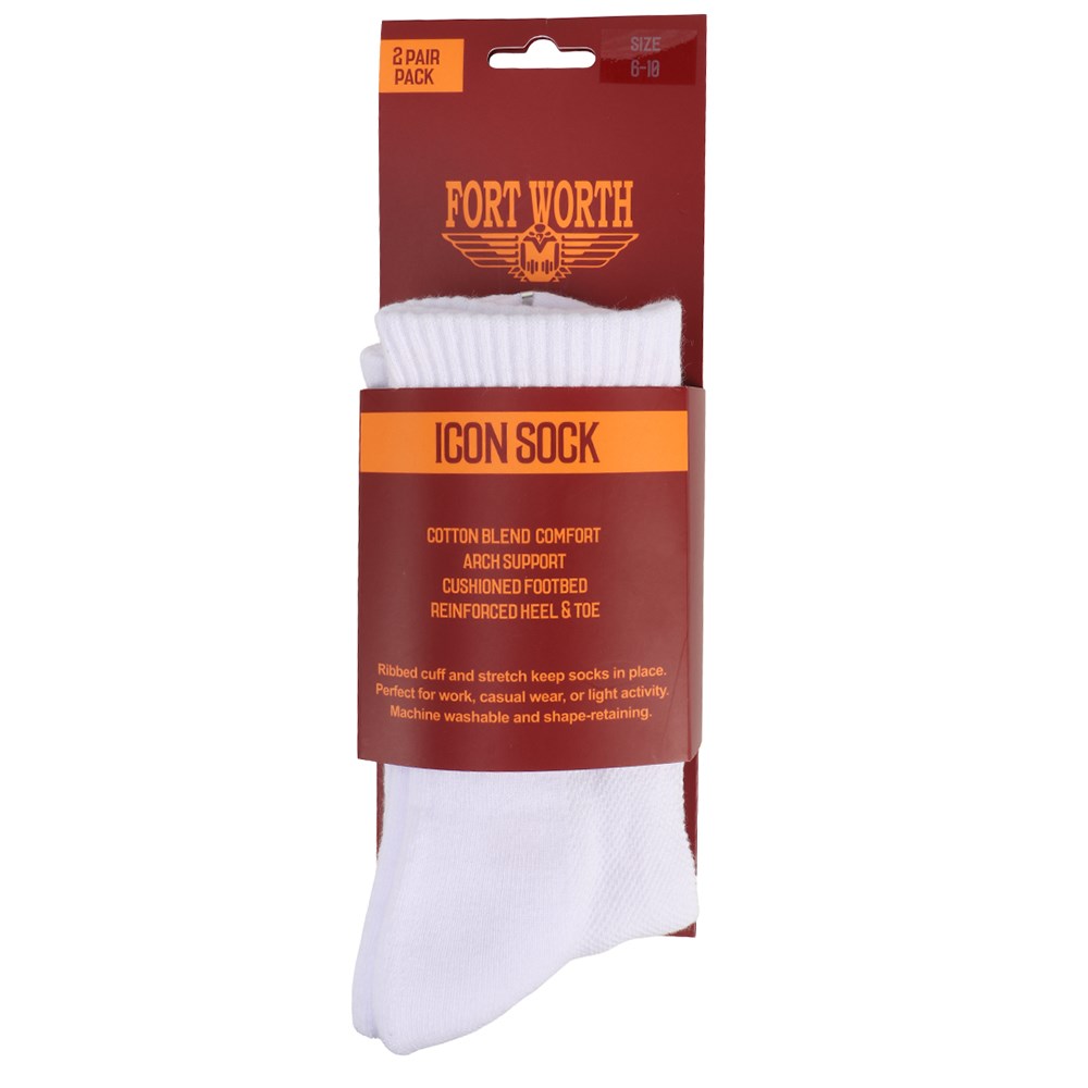 Enjoy all day comfort and style with the Fort Worth Icon Socks 2 Pack, designed using a quality cotton blend for a soft, breathable fit. Reinforced heel and toe areas increase durability, and the arch support and cushioned footbed provides superior comfort.