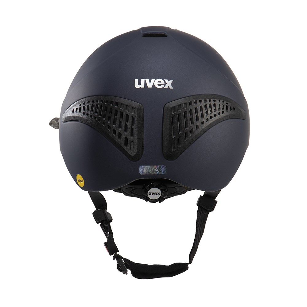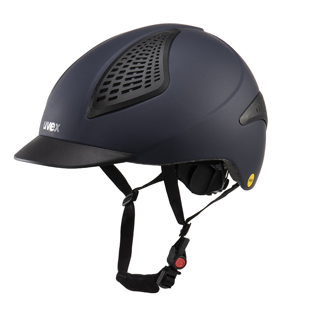 Experience cutting edge equestrian safety with the Uvex Exxential III MIPS Riding Helmet. Engineered with the innovative Multi-Directional Impact Protection System, this helmet minimises rotational forces during angled impacts for enhanced brain protection. Its inmould construction delivers a lightweight yet durable shell, while the low cut ergonomic design extends coverage for superior safety. The adjustable 3D IAS fit system and Monomatic comfort lock provide a secure, personalised fit every ride. Featuring a convenient ponytail cut out and optimised airflow for maximum comfort, the stylish matt finish completes its modern look. Discover the ideal balance of safety, performance, and comfort with the Exxential III MIPS - crafted for riders who demand the best.