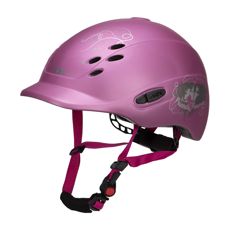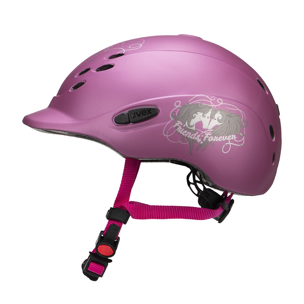 Let your young rider's pony dreams come true while staying safe with the Uvex Onyxx Friends Helmet II in Pink. Engineered for maximum protection, this lightweight children's riding helmet blends advanced German safety technology with breathable comfort. The Uvex IAS 3D size adjustment system ensures a snug, custom fit that grows with your child, while the robust inmould construction delivers superior impact resistance. Cleverly placed ventilation channels and a climate-regulating inner lining keep heads cool even in the Australian summer. Designed with style, comfort, and safety in mind, this helmet makes every ride worry-free and enjoyable. Discover premium equestrian protection with Uvex - trusted worldwide for uncompromising safety and performance.