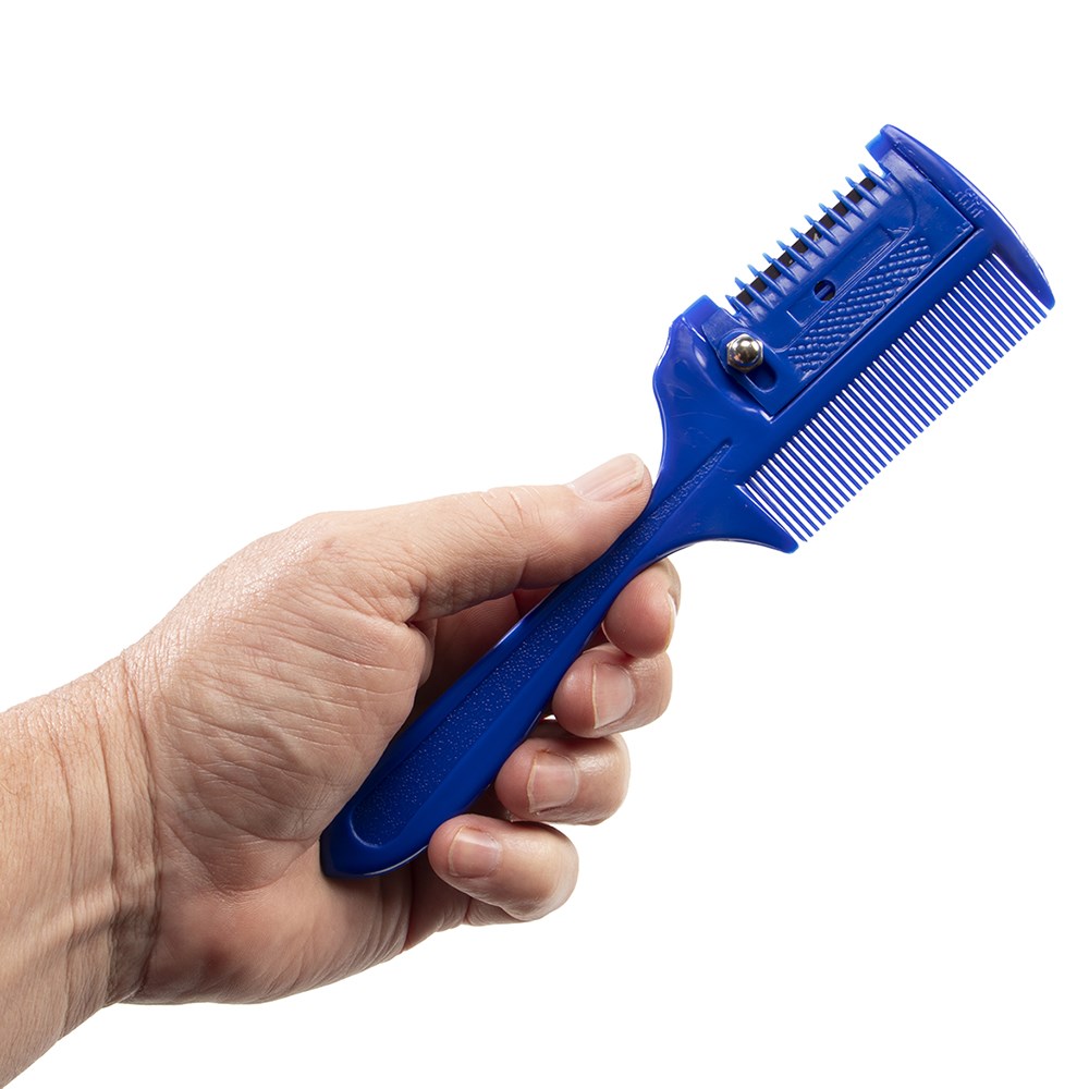 Discover the ultimate grooming tool with the Showmaster Plastic Thinning Razor w/Comb in Blue. This versatile tool is perfect for thinning manes and tails, ensuring your horse looks its best.