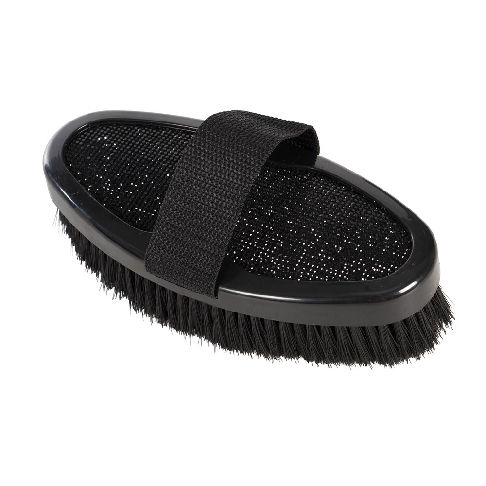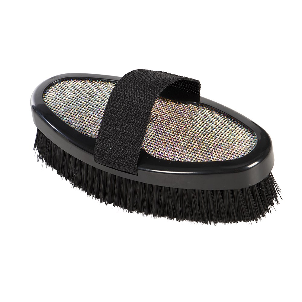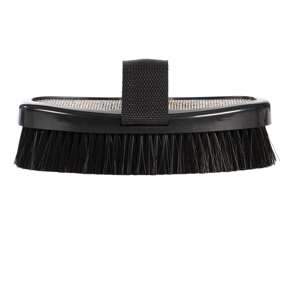 Add a touch of glamour to your horse or pony's grooming kit with the Showmaster Sparkle Body Brush, designed to remove dirt while leaving the coat looking sleek and show ready. Strong synthetic bristles provide effective cleaning of the coat without compromising comfort, making it ideal for everyday use and adding the final touch before a competition. A sparkling decorative back adds eye-catching style to your tack box, perfect for young riders and fashion conscious equestrians who love a bit of bling.