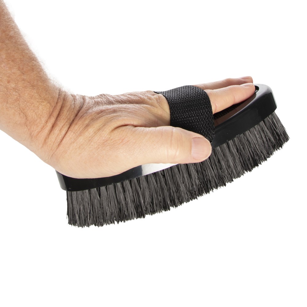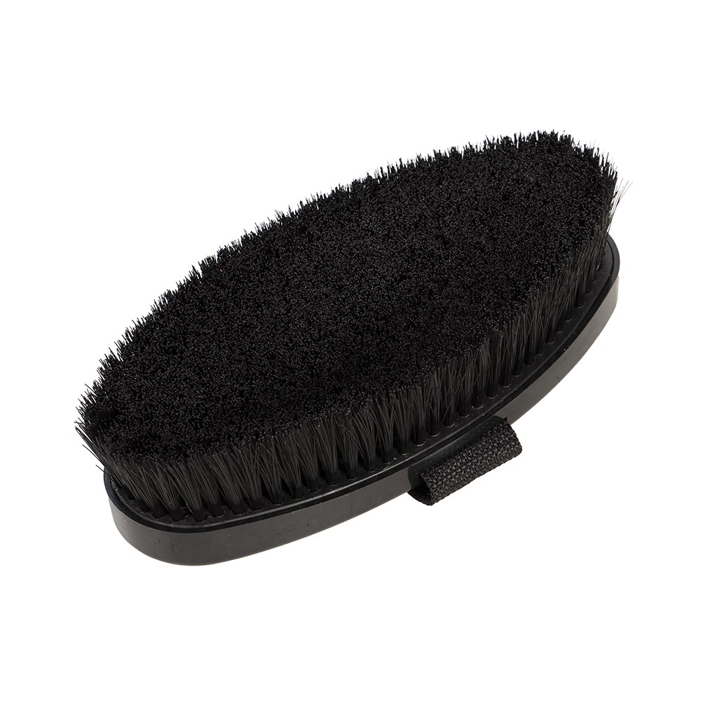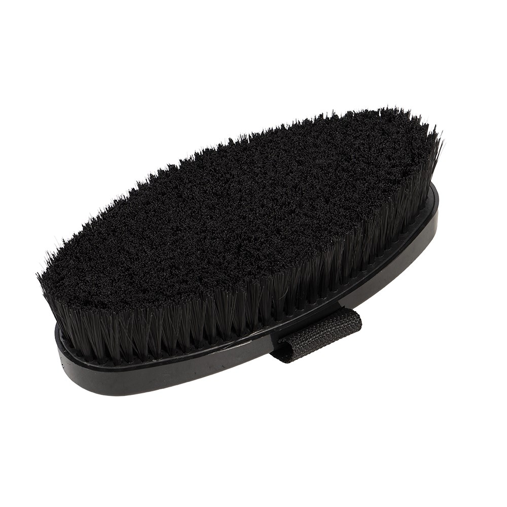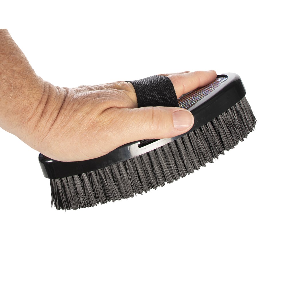 Add a touch of glamour to your horse or pony's grooming kit with the Showmaster Sparkle Body Brush, designed to remove dirt while leaving the coat looking sleek and show ready. Strong synthetic bristles provide effective cleaning of the coat without compromising comfort, making it ideal for everyday use and adding the final touch before a competition. A sparkling decorative back adds eye-catching style to your tack box, perfect for young riders and fashion conscious equestrians who love a bit of bling.