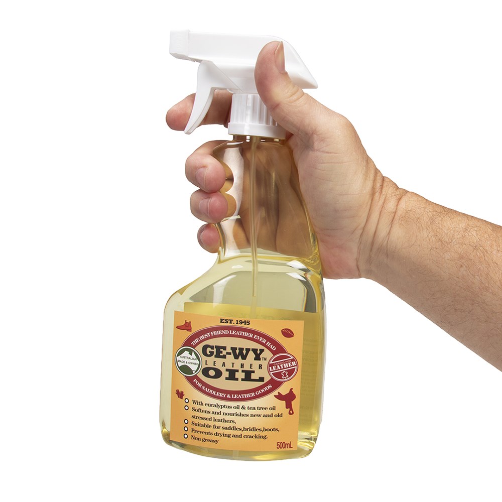 Revitalize your leather goods with GE-WY Leather Oil, the ultimate leather conditioner since 1945. This Australian-made formula, enriched with eucalyptus and tea tree oils, softens and nourishes both new and old stressed leathers. Perfect for saddles, bridles, and boots, it prevents drying and cracking while leaving a non-greasy finish. GE-WY Leather Oil penetrates deeply, restoring your leather to a like-new feel and appearance. Easy to apply and quick to absorb, this oil is essential for maintaining the longevity and quality of your leather items.