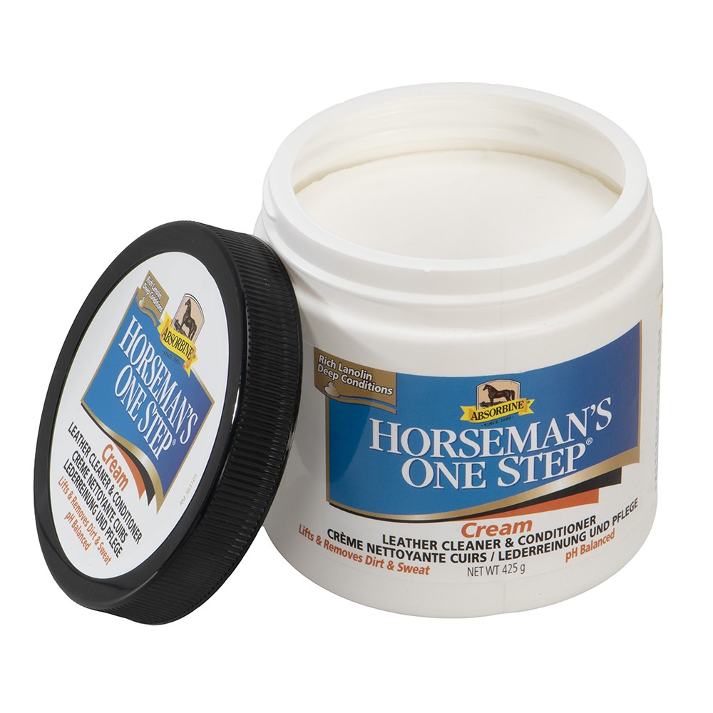 Horseman's One Step Harness Leather Cleaner & Conditioner is an easy-to-use cream, featuring a new container with a user-friendly screw top lid.
