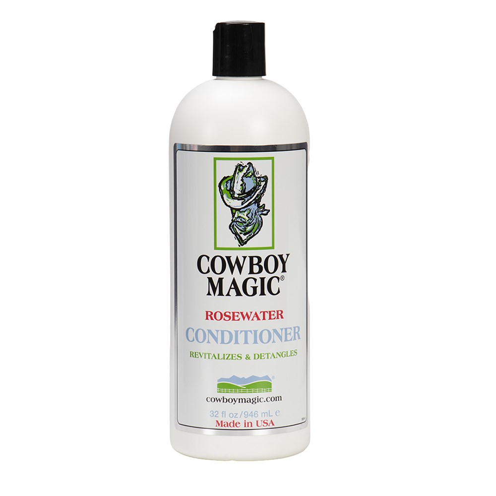 Experience the power of Cowboy Magic Rosewater Conditioner, designed to effectively remove mineral and chemical buildup from hair caused by hard bore water and town water. This concentrated herbal blend not only detangles and conditions but also strengthens your horse's hair, leaving it smooth and manageable. Enriched with Sun Fade Brighteners, it protects against sun damage. Allergy tested and dermatologist reviewed, this versatile conditioner is safe for use on horses, humans, livestock, and pets.