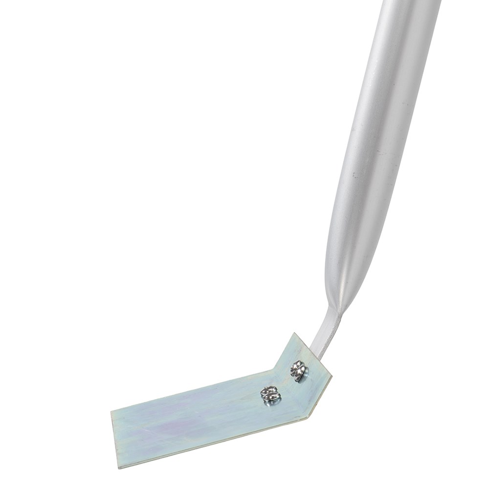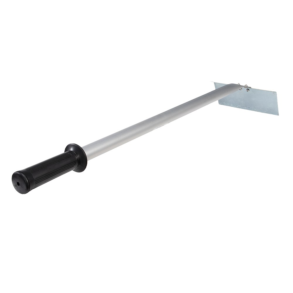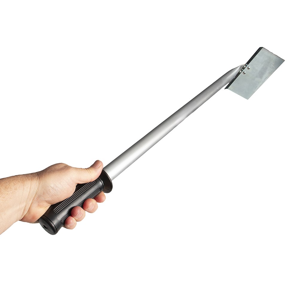 Scraper on handle with hand grip.